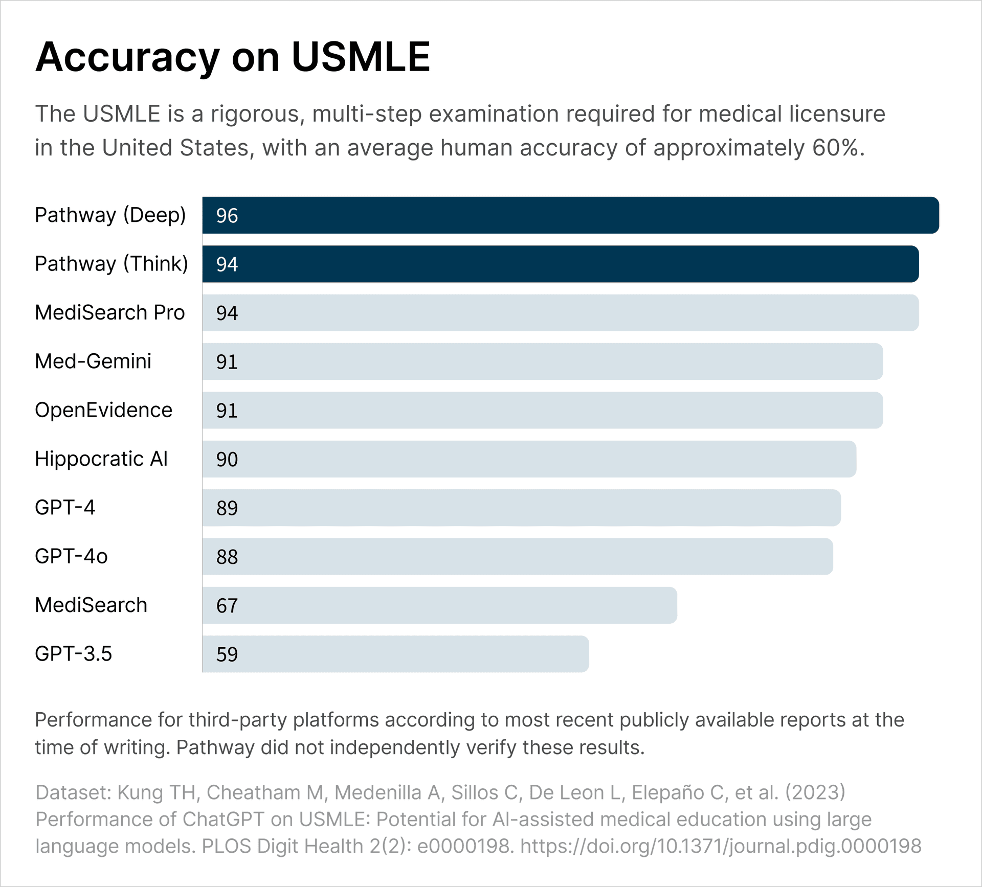 Pathway today announced that its proprietary large-language model (LLM) scored 96% on a validated set of United States Medical Licensing Examination (USMLE) questions, the highest accuracy yet reported for a specialized medical AI. The result strengthens Pathway’s position as a leading evidence-based decision-support tool for frontline clinicians.